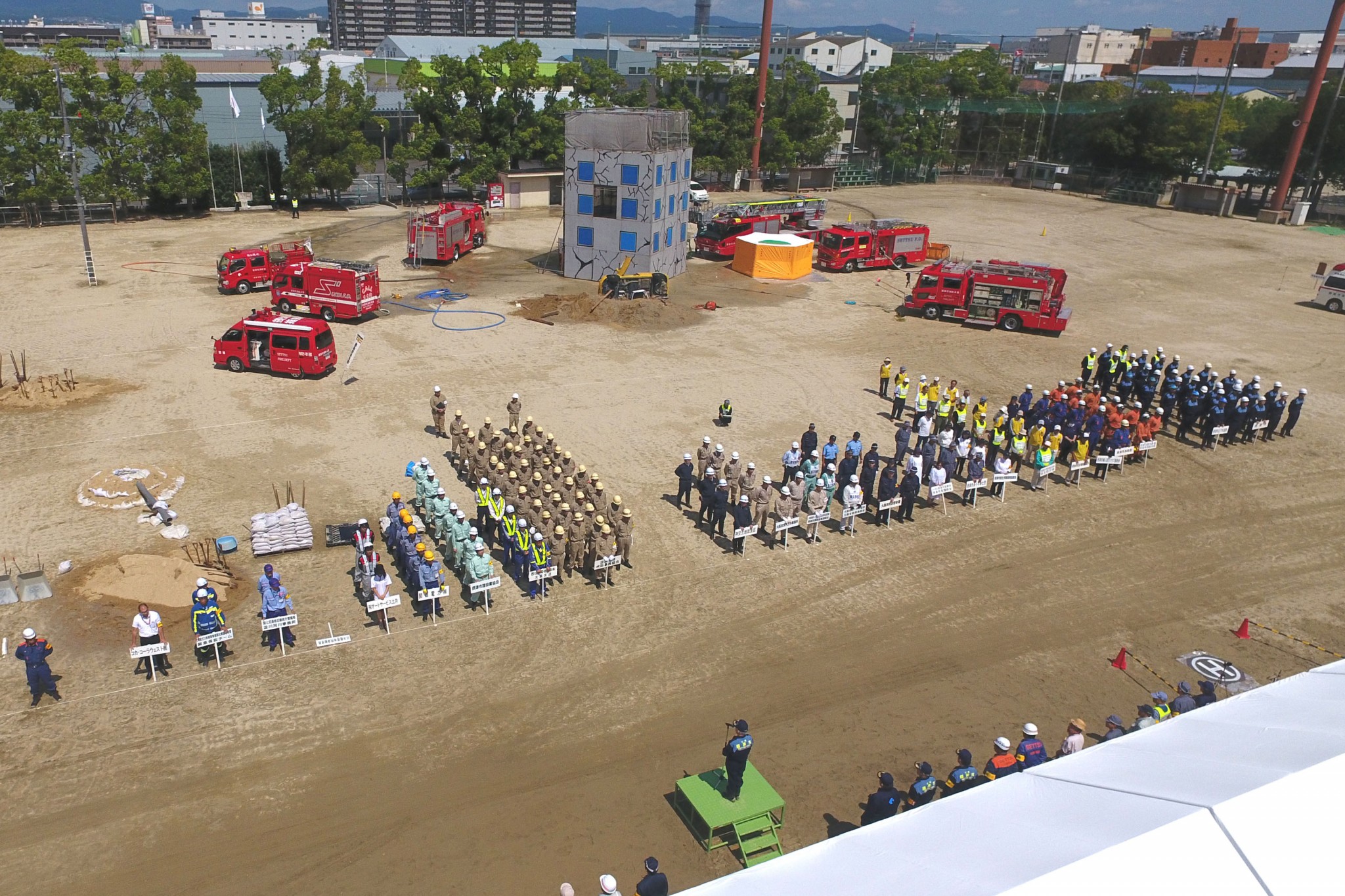 平成29年9月8日(金)、「平成29年度摂津市総合防災演習」におけるドローンによる安威川水難遭難者捜索及び摂津市・吹田市・摂津市消防団の合同救助訓練に参加しました。