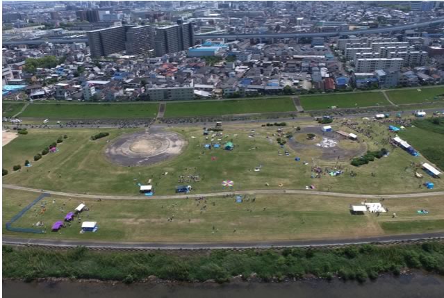 平成29 年4 月23 日(日)、淀川河川公園(八雲地区)で「第49 回 守口市こどもまつり」が開催され、本協議会は会場の警備のための情報集活動および撮影の協力をさせて頂きました。当日は、快晴に恵まれ会場を飛行エリアの淀川河川上より絶好のフライト条件で無事協力依頼に応えることが出来ました。